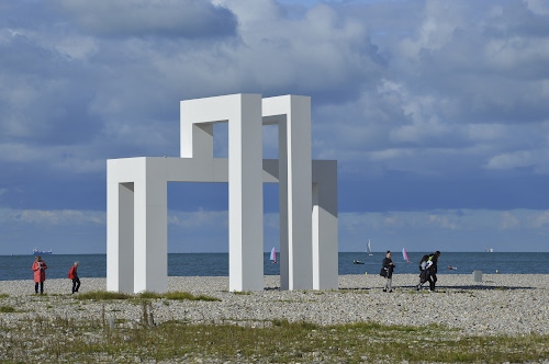 Monumento UP#3 di Lang e Bauman sulla spiaggia,