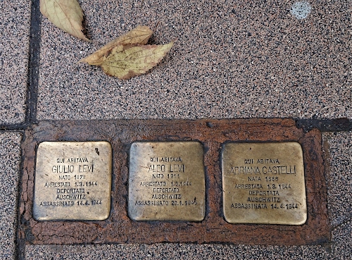Le pietre d'inciampo sono dei piccoli blocchi quadrati di pietra ricoperti di ottone, grande quanto un sanpietrino collocata a scopo memoriale davanti alla porta della casa nella quale aveva abitato un deportato nei campi di sterminio nazista, recante il nome del deportato stesso, l’anno di nascita, la data e il luogo della deportazione e la data di morte.