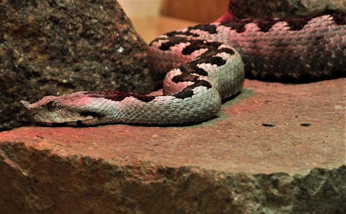 Vipera ammodytes. La migliore foto del contest, l'unica con un'idea della composizione, non ripetitiva come alcune altre. Interessante ed originale illuminazione rossa data probabilmente dalla luce calda del terrario. Chiaramente si trova alla terzultima posizione. ![]() |