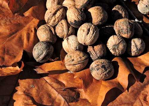 Foto dell'autore mavi80 candidata al contest fotografico marrone su Dizy. Data inserimento: mercoledì 8 febbraio 2023. Titolo: Noci su foglie