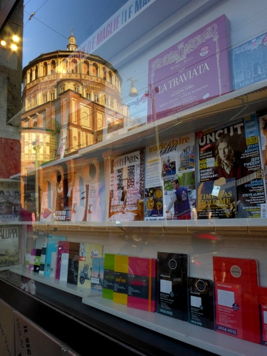 Tag: vetrina, riflesso, libri, chiesa, riviste, libreria, giornali, torre.