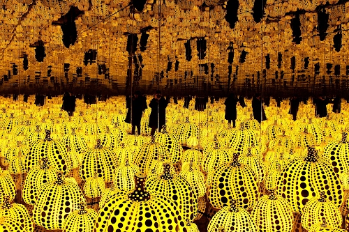 "Infinity Mirrored room"(2016). Installazione dell'artista giapponese Yayoi Kusama, dove lo spazio è ripetuto all’infinito in un caotico gioco di specchi. (Mostra al Chiostro del Bramante a Roma, 2017)