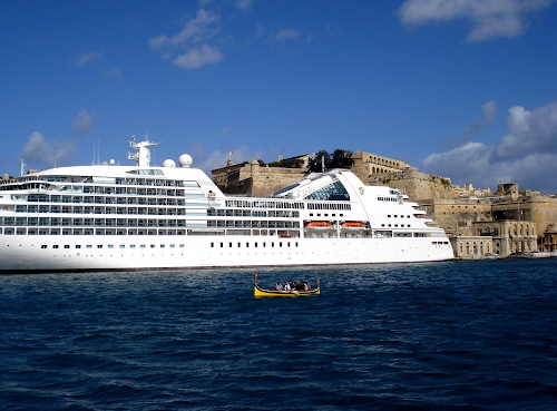Foto dell'autore marivodo candidata al contest fotografico navi su Dizy. Data inserimento: mercoledì 24 maggio 2023. Titolo: Nel porto di Malta, il gigante e la gondola.