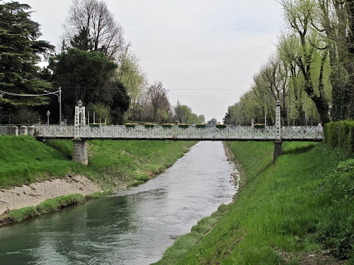 Durante l'attraversamento di Vicenza, il Bacchiglione è canalizzato.