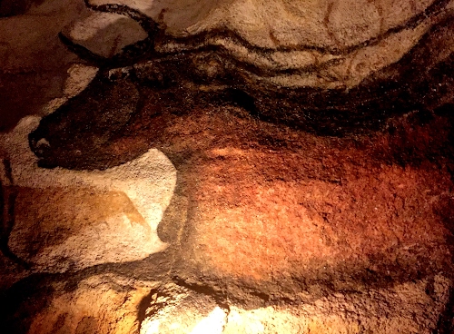 Particolare di una delle pitture parietali nella grotta di Lascaux 2 in Périgord. Dopo la chiusura del sito preistorico originario di Lascaux nel 1963, per preservarlo dal deterioramento che lo minacciava, fu costruita una replica perfetta, la cui visita rende comunque tutta la suggestione e la bellezza di questa straordinaria arte