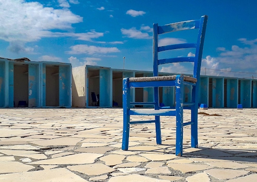 Foto dell'autore Diana Cocco candidata al contest fotografico sedia su Dizy. Data inserimento: mercoledì 10 aprile 2024. Titolo: Sedia blu in spiaggia