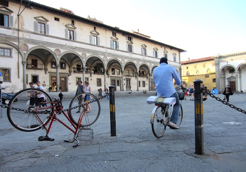 Pedalare e " parcheggiare" in piazza SS Annunziata a Firenze