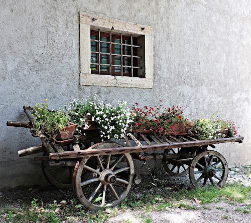 Foto dell'autore mavi80 candidata al contest fotografico fioriera su Dizy. Data inserimento: mercoledì 29 maggio 2024. Titolo: Carretto con finestra