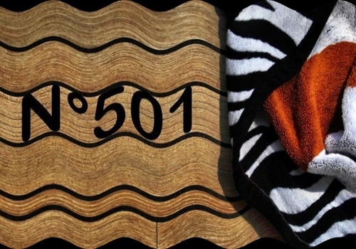 con il numero è una parte della cabina dei capanni al mare, con appeso il telo da spiaggia. |