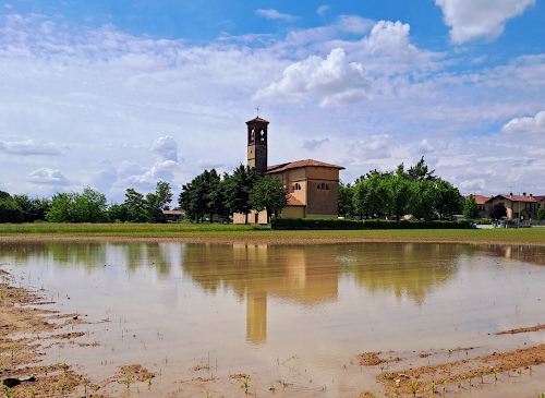 Foto dell'autore mavi80 candidata al contest fotografico pozzanghera su Dizy. Data inserimento: mercoledì 12 marzo 2025. Titolo: La chiesa si riflette grazie a Sora Acqua