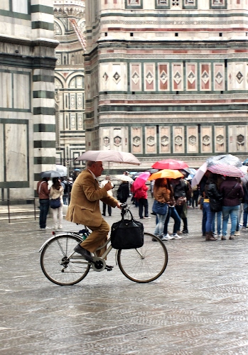 Foto dell'autore marivodo candidata al contest fotografico ombrello su Dizy. Data inserimento: sabato 1 febbraio 2025. Titolo: Ombrello a bicicletta in piazza Duomo