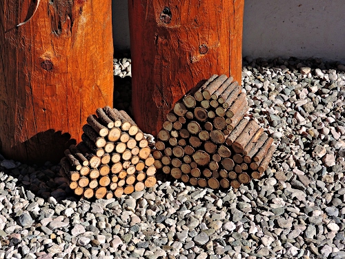 Cuori di legno in giardino