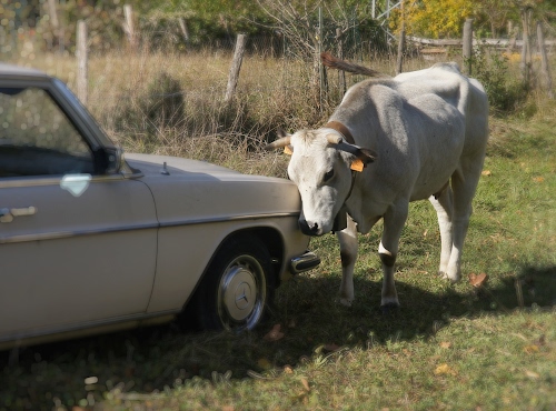 Foto dell'autore Maurizio Altemani candidata al contest fotografico animale su Dizy. Data inserimento: domenica 13 aprile 2025. Titolo: la mucca che amava le Mercedes...