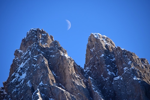 Foto dell'autore Pizzicastelle candidata al contest fotografico vette su Dizy. Data inserimento: martedì 6 maggio 2025. Titolo: Luna tra le vette