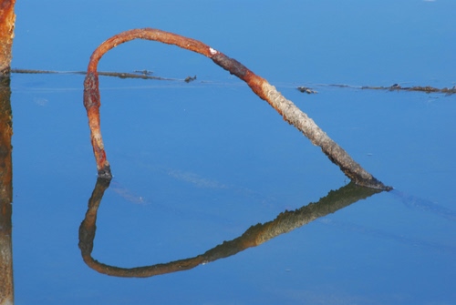 Tag: riflesso, cuore, acqua, ruggine, mare, ferro, ramo, tubo, blu, azzurro.