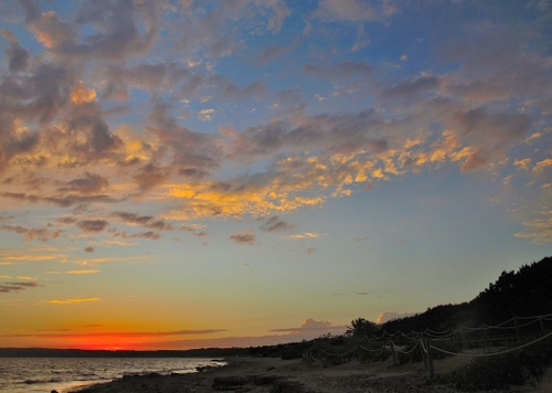 Altri tag (senza riscontro): sera, pali, paesaggio, alba, controluce, monti, corda, orizzonte, costa, alberi, arancio, sole, sabbia.