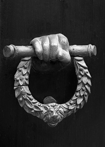 Tag: mano, batacchio, bianconero, porta, leone, portone, battiporta.