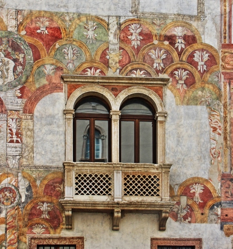 bella immagine - l'affresco impreziosisce molto il balcone che copn il riflesso sui vetri attira molto lo sguardo |