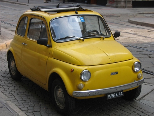 Una 500 (di quelle autentiche...) targata Cagliari, in pieno centro a Milano.