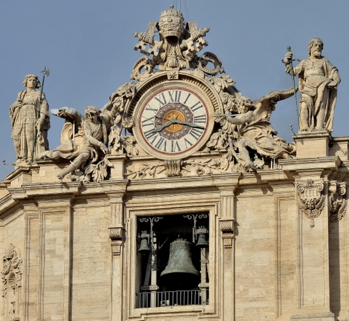 Basilica di San Pietro - Orologio posto sul lato sinistro, guardando la facciata, realizzato nel 1785 da Giuseppe Valadier, architetto orafo e argentiere italiano.