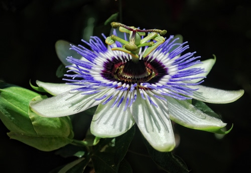 Tag: fiore, petali, verde, bianco, passiflora, natura, viola, pistilli, stami.