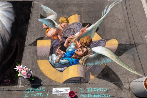 Tag: angeli, disegno, ali, angelo, fiori, madonna, strada, madonnaro, multicolore.