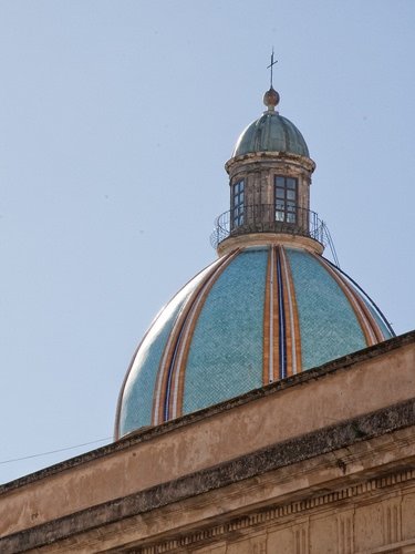 Tag: croce, cupola, finestre, chiesa, verde, ringhiera, azzurro, cornicione, cielo.