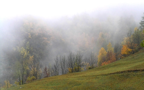 Tag: nebbia, alberi, verde, autunno, collina, erba, prato, piante, bosco.