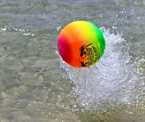 Tag: acqua, palla, sfera, colori, arcobaleno, verde, rosso, schizzi, mare, pallone, giallo, multicolore.