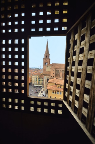 Tag: campanile, finestra, piazza, tetti, chiesa, legno, grata, scorcio, cornice.
