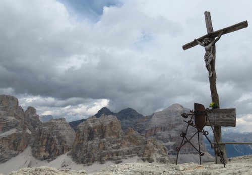 Croce nei pressi del rifugio Lagazuoi in ricordo dei caduti della I guerra mondiale.