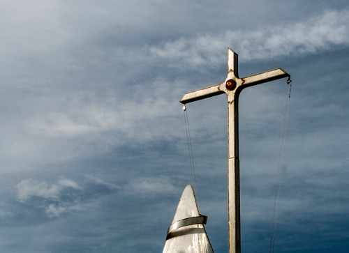 Altri tag (senza riscontro): simbolo, acciaio, nubi, moderna, metallo, carrucola, blu, rosso, crocifisso, tiranti, pinna.
