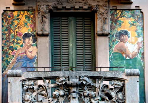 Particolare della decorazione esterna di casa Galimberti, in via Malpighi. L'edificio è uno delle più belle realizzazioni del Liberty a Milano.