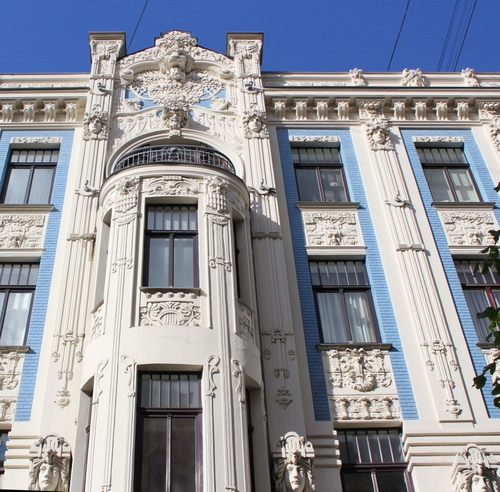 Foto dell'autore botta e risposta candidata al contest fotografico liberty su Dizy. Data inserimento: venerdì 16 gennaio 2015. Titolo: Palazzo con testa di leone, satiri e donne a Riga