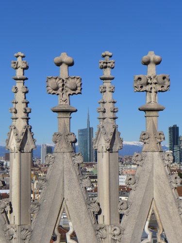 796° Luci e ombre sulle croci ed i pinnacoli | 890° 25° davanti al Duomo |