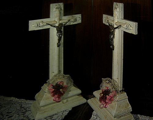Tag: due, croci, bianco, crocifissi, fiori, nero, crocifisso, croce, pizzo, legno, rosa, riflesso.