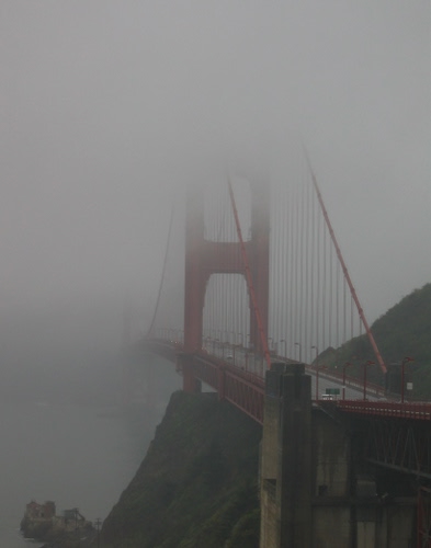 Il Golden Gate di San Francisco in un nebbioso giorno di febbraio.