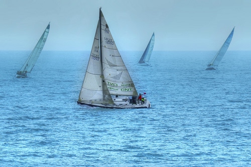Tag: barche, mare, vele, azzurro, regata, vela, acqua, gara, cielo.