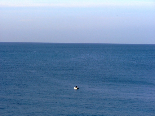 Con la semplicità di questo scatto ho voluto mettere in evidenza un concetto che risalta molto bene sia dalla fotografia stessa che, ovviamente, dal titolo; questo concetto è l'infinità di madre natura nei nostri confronti, in particolare, l'infinità del cielo che si mescola con l'immensità del mare e questi due elementi sono in netto contrasto con la piccolezza e l'impotenza della barchetta e del pescatore.