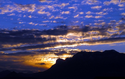 Tag: nuvole, cielo, tramonto, sole, controluce, montagna, montagne, silhouette, blu, azzurro, rosso, luce.
