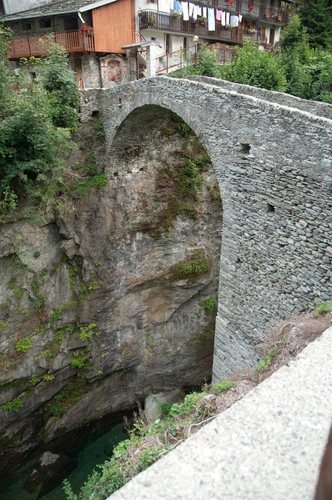 Per poter calpestare questo ponte si deve salire a Ribordone, il capoluogo di una vallata laterale del torrente Orco(la valle del Gran Paradiso dalla parte Piemontese), sede anche di un noto e frequentato santuario Mariano. Il dislivello del ponte dal torrente sottostante è parecchio impressionante.
