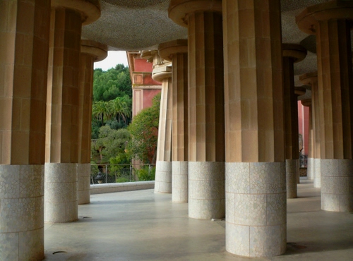 Altri tag (senza riscontro): atrio, portici, lampione, pilastri, marmo, ringhiera, cielo, prospettiva, storte, bianco, ombre, capitelli, pietra, scorcio, rosso, linee, scavi, rosa, rovine, colonna, gaudì, barcellona.