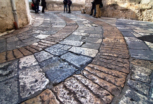 Mi piace l'idea di evidenziare la pavimentazione e la luce sulla stessa ma quelle persone tagliate non le capisco, non credo che lasciarle intere, o toglierle del tutto, avrebbe compromesso lo scatto.