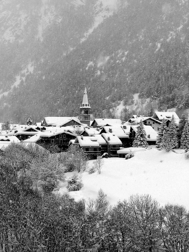 Tag: neve, inverno, campanile, paese, alberi, bianconero, tetti, montagna, borgo, paesaggio, case.