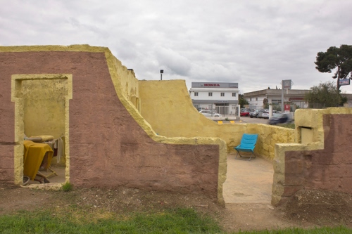 Taranto:Originali colori e forme fioriscono da un rudere campestre ormai inglobato da una fitta rete stradale ad alto livello di traffico automobilistico.