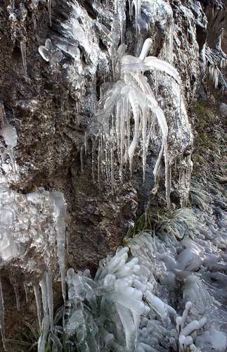 Ghiaccio su di una parete rocciosa sulla via per Limone Piemonte.