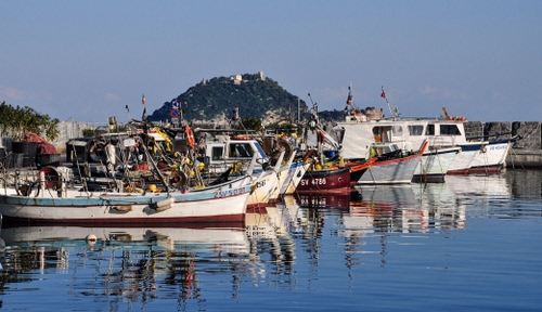 Tag: barche, porto, mare, riflesso, pesca, acqua, riflessi, cielo, montagna, bandiere, porticciolo, natanti.