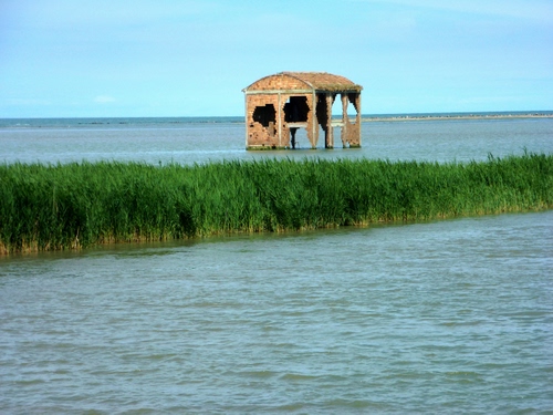 L'orizzonte sembra pendente a sinistra. Il rudere poteva essere messo meglio, seguendo la regola dei terzi e tagliando la parte bassa e a destra anche perché tutta quell'acqua non serve. Si poteva inquadrare il soggetto a partire dalle siepi inclinando la macchina fotografica e inquadrando più cielo, che se ci fossero state delle nuvole sarebbe stato più interessante. Anche il momento dello scatto non è ideale, poiché sarebbe stato meglio essere sul posto all'alba o al tramonto. Quello che mi è piaciuto è la semplicità della composizione e con una maggior attenzione alle regole sarebbe stata una buona fotografia. |