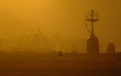 Il giallo è dovuto solo alle luci artificiali diffuse dalla nebbia.