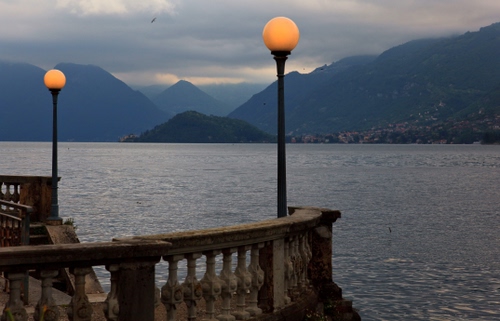 Tag: lampioni, lago, montagne, acqua, nuvole, panorama, cielo, mare, balaustra, due.